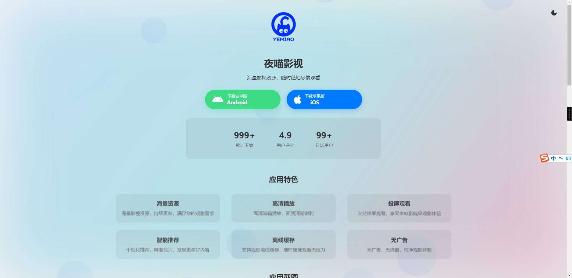 非常不错的一款APP软件下载介绍页源码,带有iOS和安卓下载入口,自适应手机、电脑端